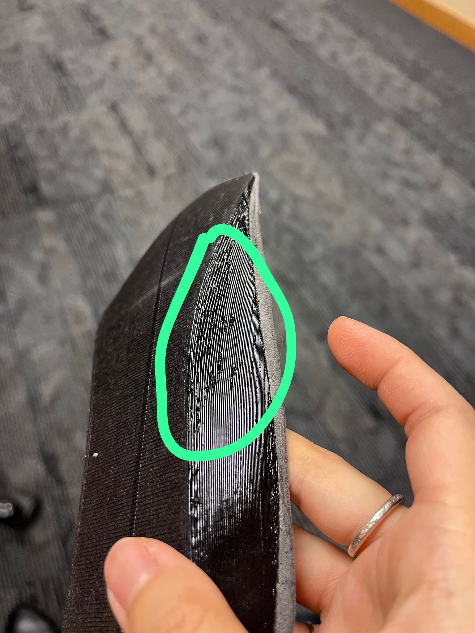 Holes in the EVA top cover that causes feet to be in direct contact with 3D printed base